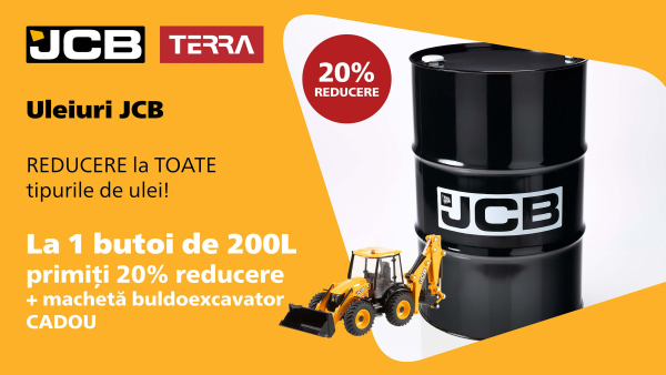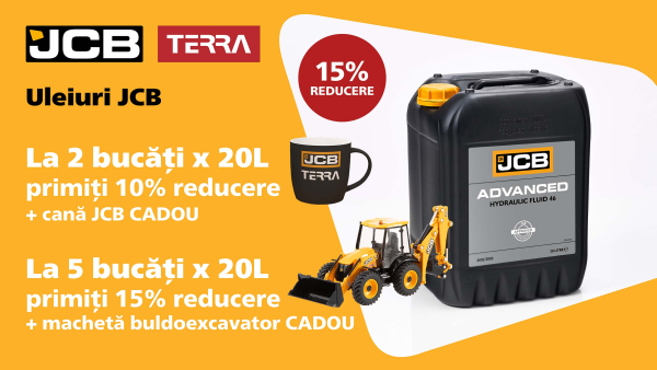 Alege uleiurile originale JCB și beneficiază de reduceri speciale și cadouri incluse în cadrul campaniei promoționale JCB & TERRA.