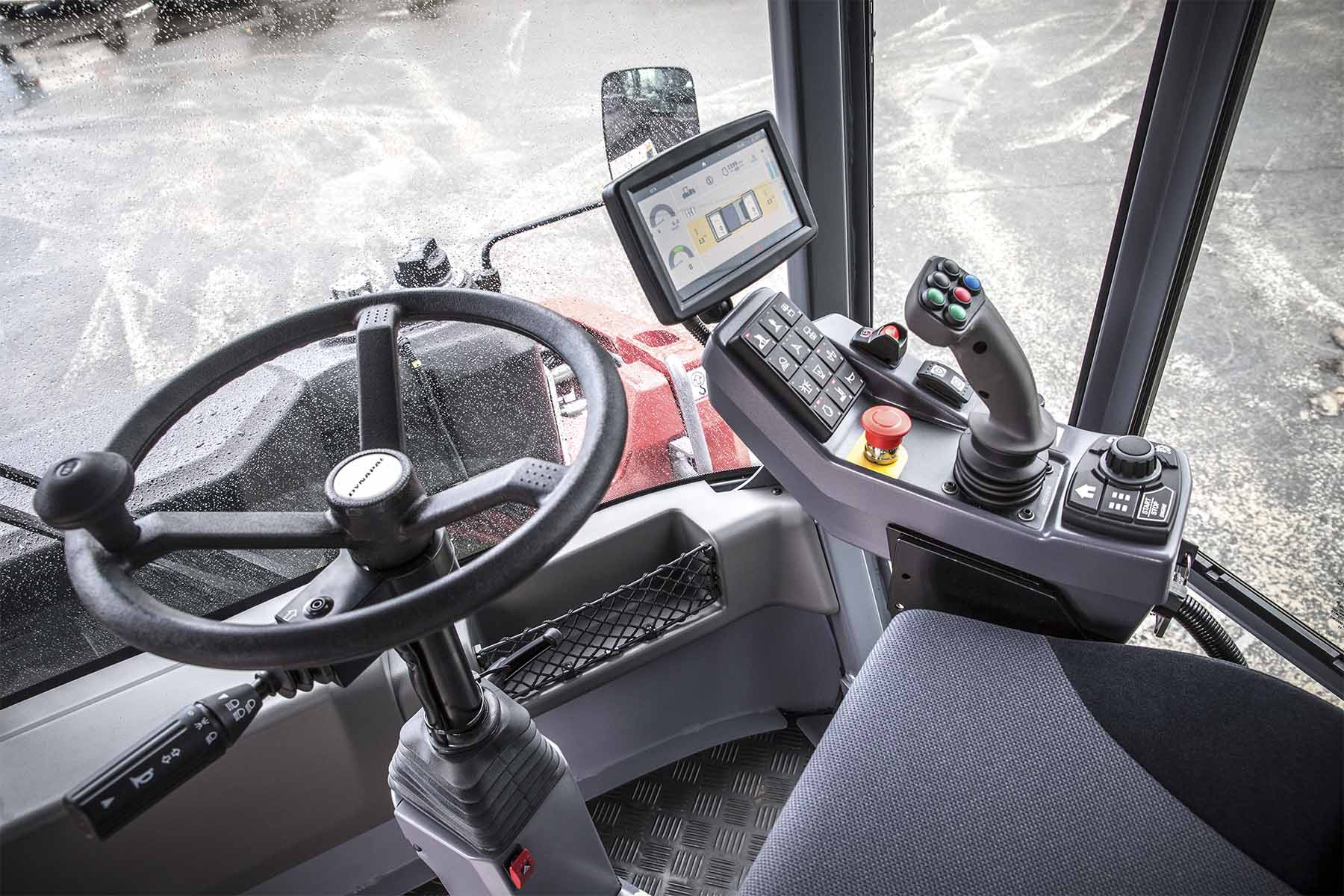 Această opţiune include și un mini volan, controlat electronic, care face mai ușoară și mai precisă direcţionarea utilajului, oferind o manevrabilitate spectaculoasă.