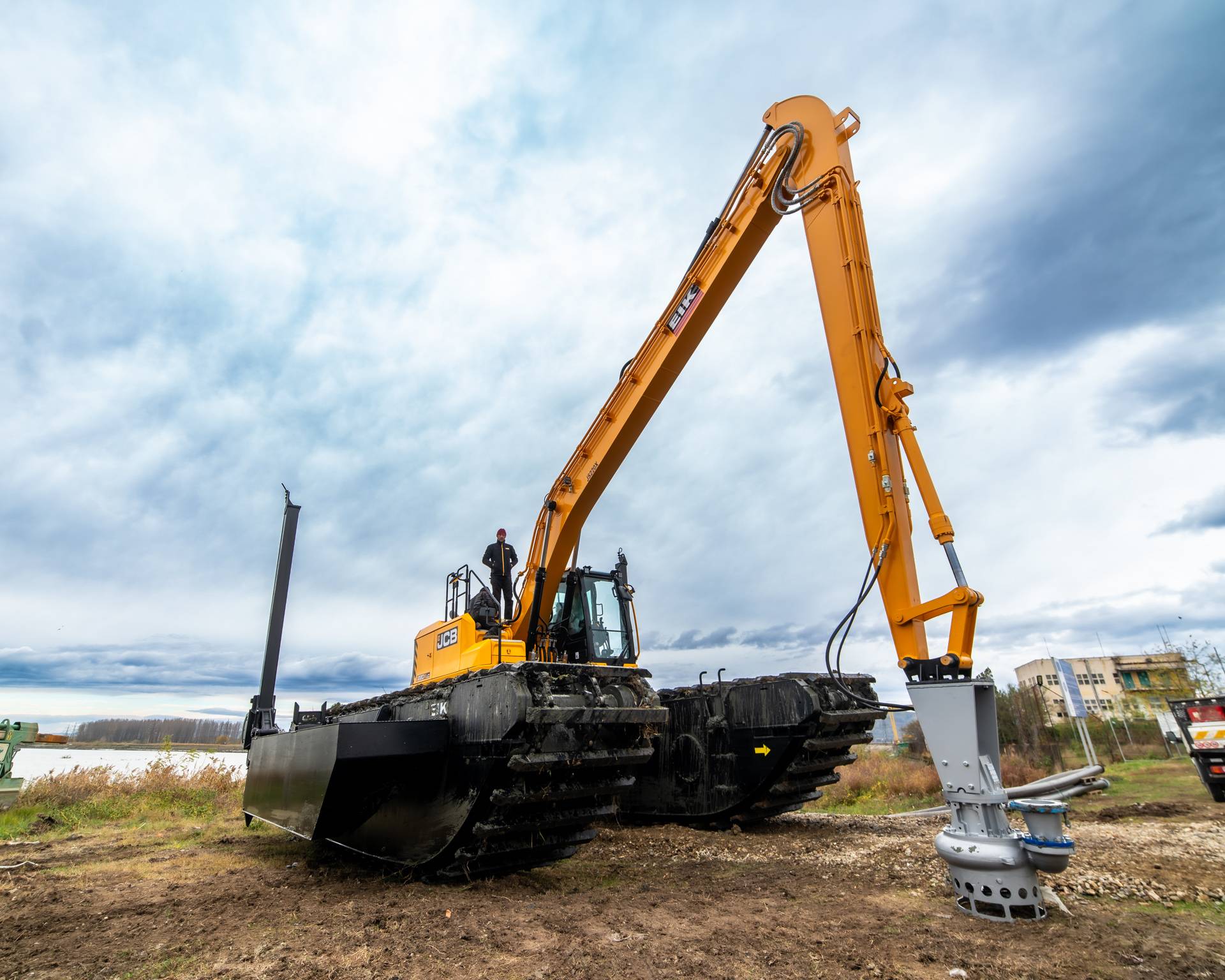 JCB soluții profesionale pentru proiecte de dragare, decolmatare, ecologizare, extracție și curățare.